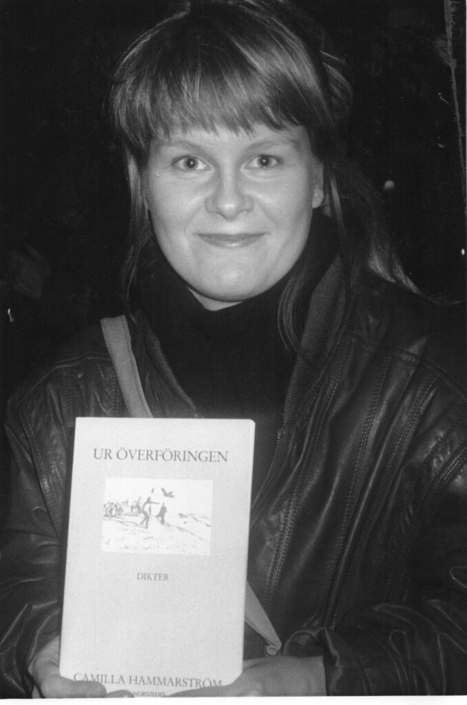 ”Att läsa Camilla Hammarströms dikter är som att träda in i ett slags bärnstenar med ett särskilt, dunkelt ljus och med speciella magnetiska laddningar. Längs metalliska spårämnen, med hjälp av fragila ljuskäglor tycks hon söka sig till en primär, ofta drömlikt arkaisk värld. En värld som dock inte saknar konturer. Ett nätverk av trådar, koner, radier, kolvar mäter ut ett rum, en egen geometri. Ibland sker det i ett intimt kosmos med hjälp av subjektets egen saliv.”
